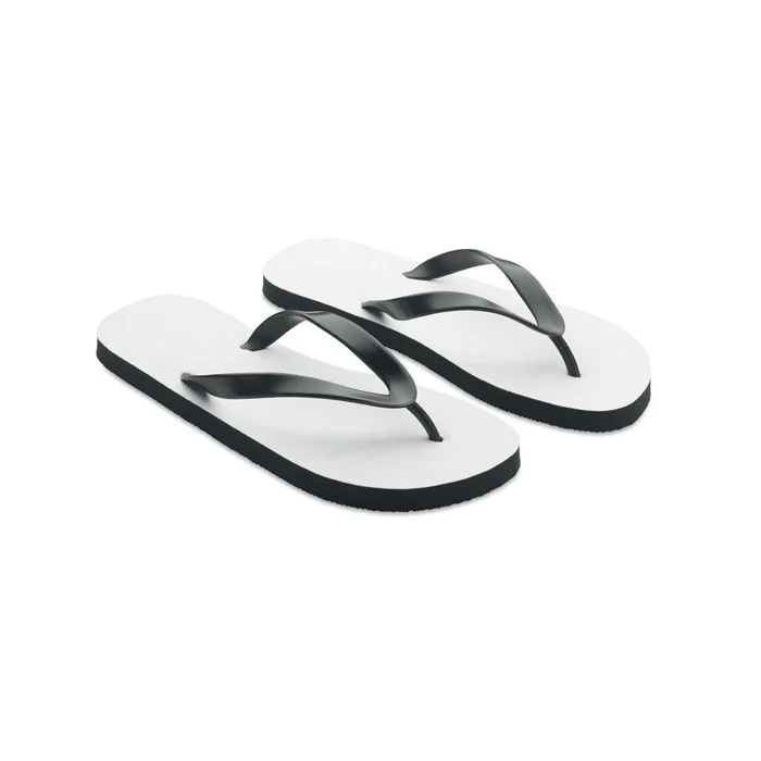 Tongs pour sublimation avec sangles en PVC. Semelle en caoutchouc et tissu en polyester sur le dessus. taille 44-46. L’article ne peut être commandé qu’en version imprimée.