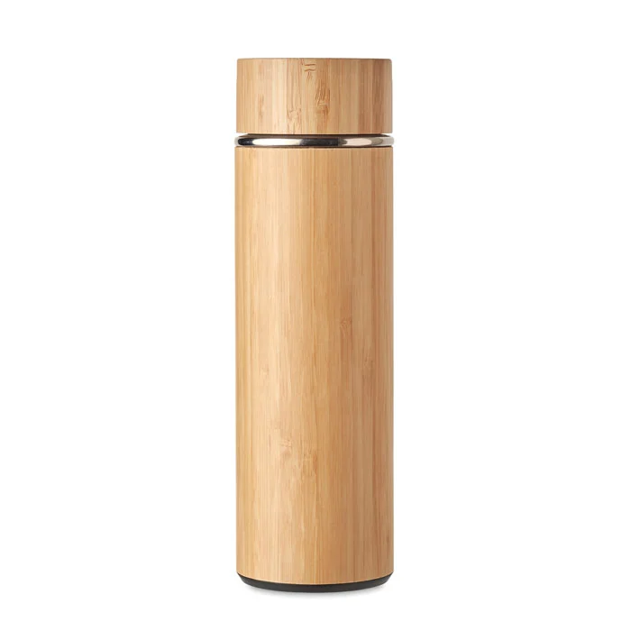 Bouteille à vide isolante à double paroi en acier inoxydable et bambou avec infuseur à thé supplémentaire à l’intérieur. Grâce à l’infuseur de thé situé à l’intérieur, vous pouvez préparer une gourde de thé frais avec votre saveur préférée. Avec une contenance de 400 ml, vous pouvez rester hydraté tout au long de la journée. Anti-fuite. Le bambou est un produit naturel, il peut y avoir de légères variations de couleur et de taille par article, ce qui peut affecter le résultat final de la décoration. FSC®-certified | FSC 100%, N5.7, FSC-C213206