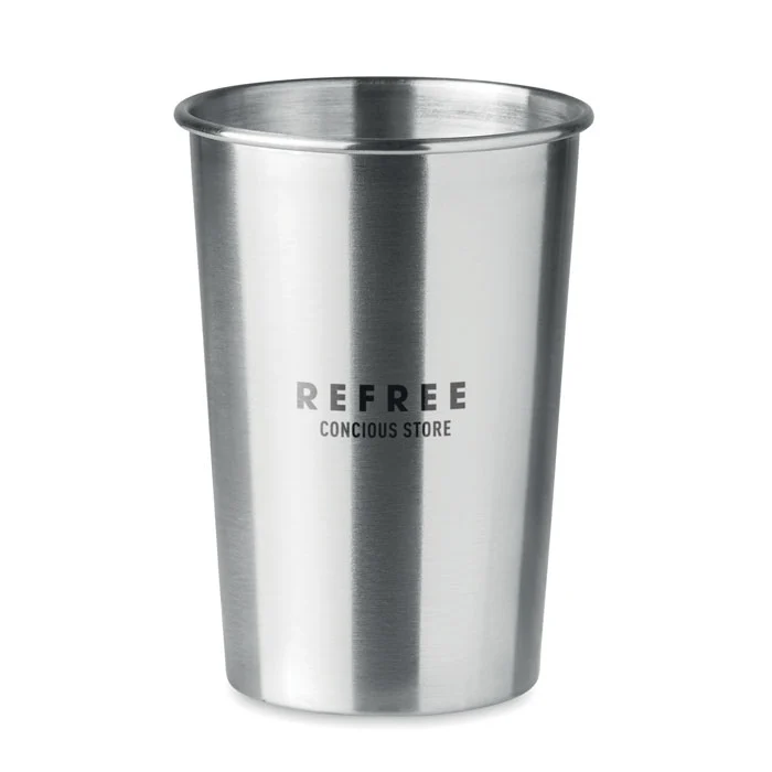 Gobelet en acier inoxydable. Capacité : 350 ml. Comme il s’agit d’un gobelet à paroi simple, un transfert de chaleur peut encore se produire.