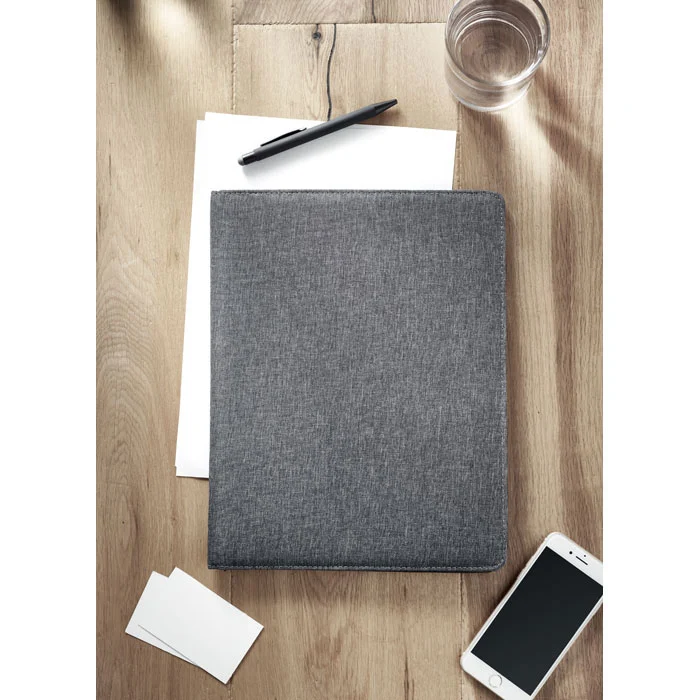 Conférencier A4 en RPET 300D bicolore. Contient des compartiments intérieurs et un porte-stylo. Comprend un bloc-notes de 20 feuilles lignées. Le bambou est un produit naturel, et présente de légères variations de couleur, de décoration et de tailles.
