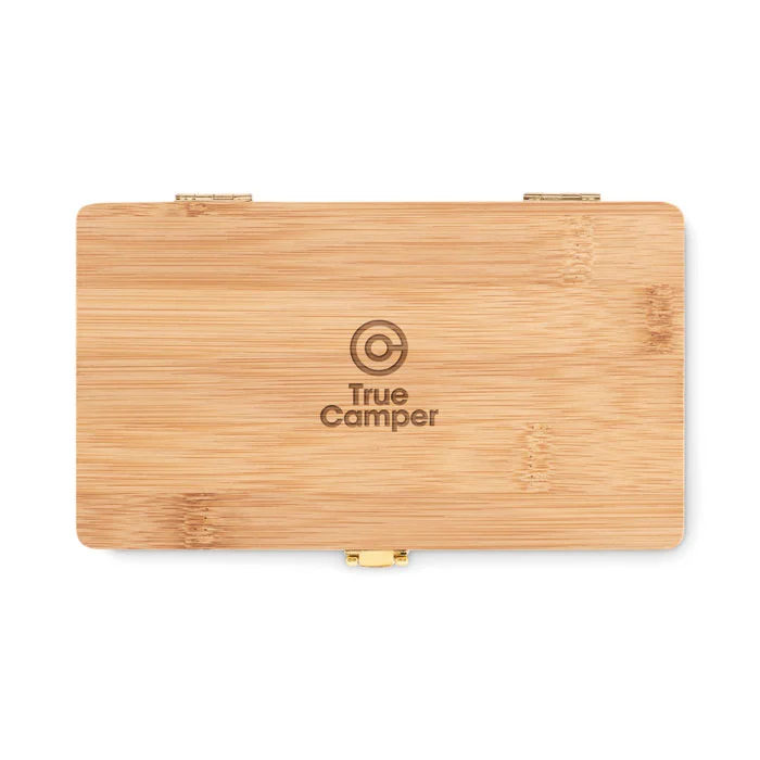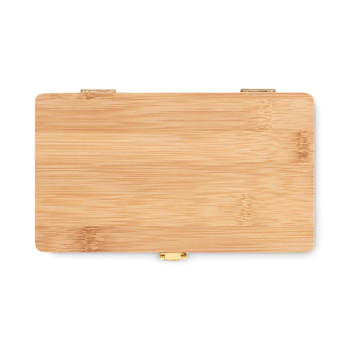 Set d’outils pratique s présenté dans un coffret en bambou à l’aspect naturel. Le cadeau idéal pour un bricoleur ou un charpentier amateur. Cette boîte pratique contient tous les outils essentiels que l’on devrait avoir chez soi en cas de réparations ou de petits projets. Elle contient 3 tournevis, 10 embouts dans un support, 3 fentes, 3 Torx et 1 adaptateur, 4 douilles, 1 cutter, 1 poignée et 1 connecteur. Le bambou est un produit naturel, il peut y avoir de légères variations de couleur et de taille par article, ce qui peut affecter le résultat final de la décoration. Taille de la boîte 19,5×11,8×3 cm. FSC®-certified | FSC 100%, N5.7, FSC-C213206