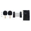 Jeu de tennis de table avec filet roulant. Comprend 3 balles, 2 battes et 1 filet extensible présenté dans une pochette en RPET.
