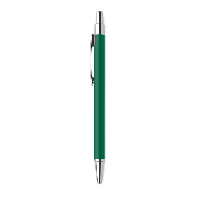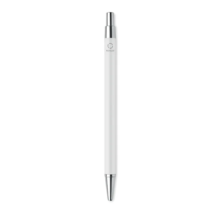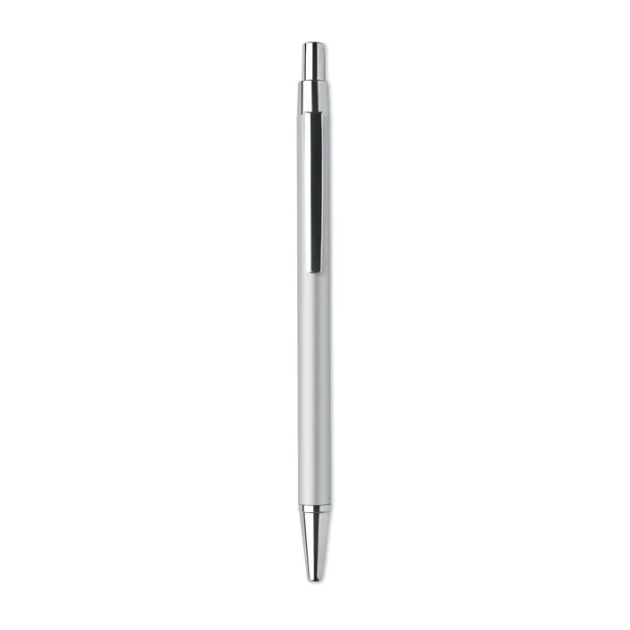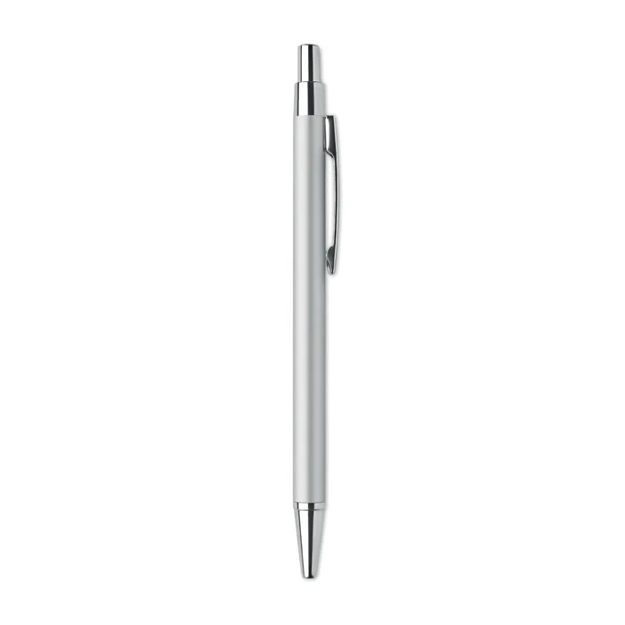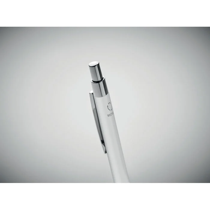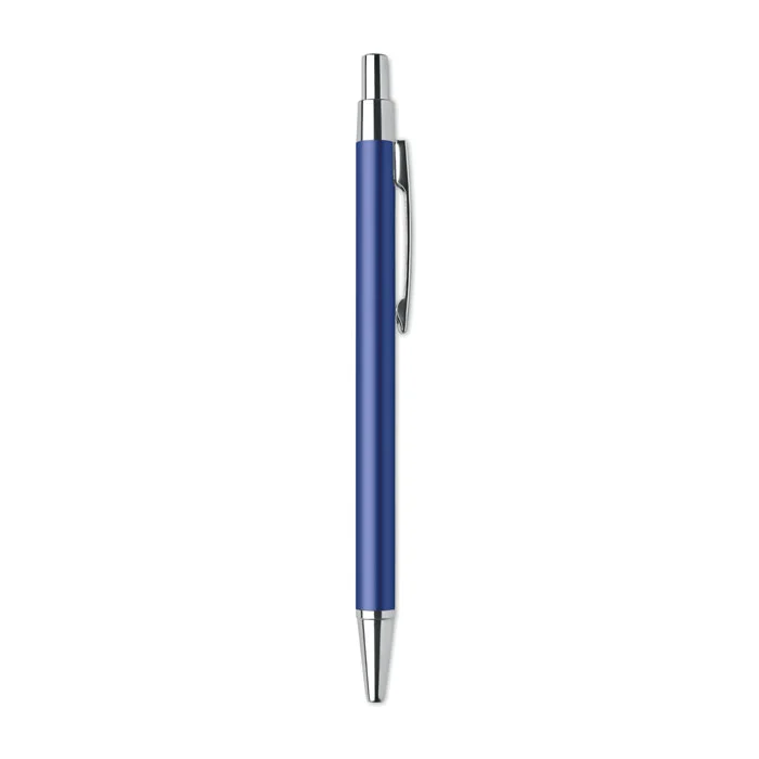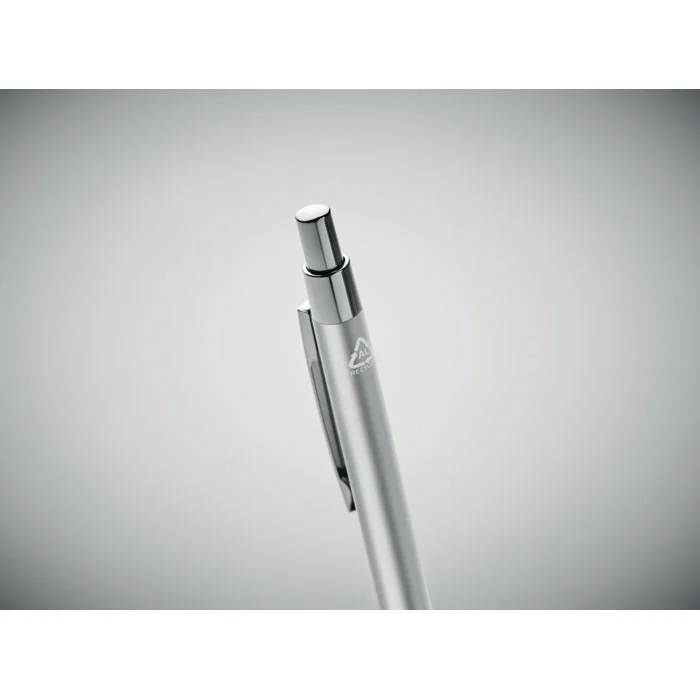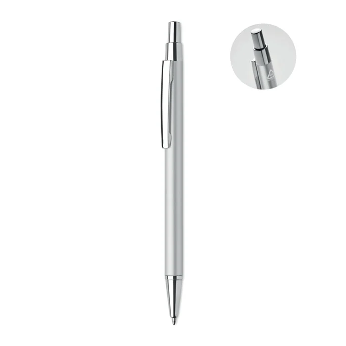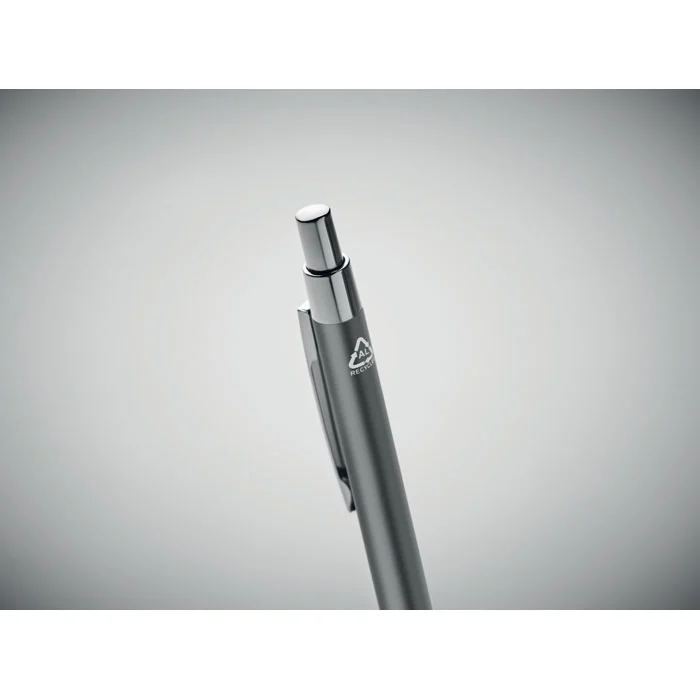 Stylo bille à bouton poussoir en aluminium recyclé. Encre bleue.