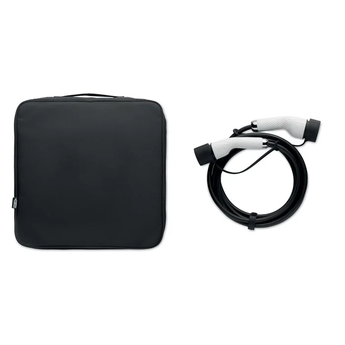 Sac de rangement rembourré et durable pour câbles de recharge en RPET 600D avec compartiments intérieurs en filet pour les voitures électriques embarquées.