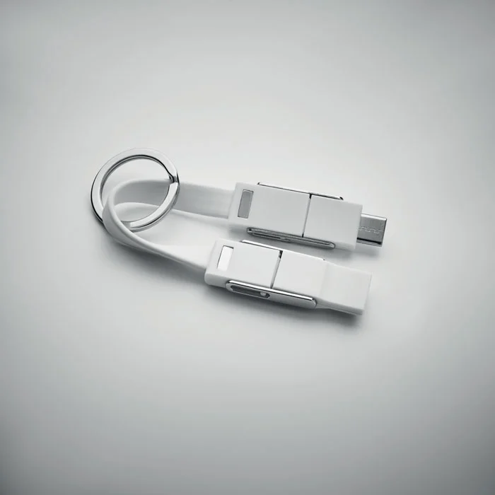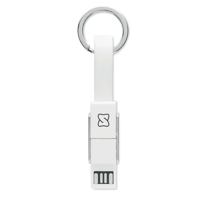Porte-clés avec câble de chargement 4-en-1 câble de chargement. Entrée/Sortie : Type-C x2, Type-A, Micro USB.