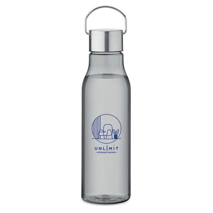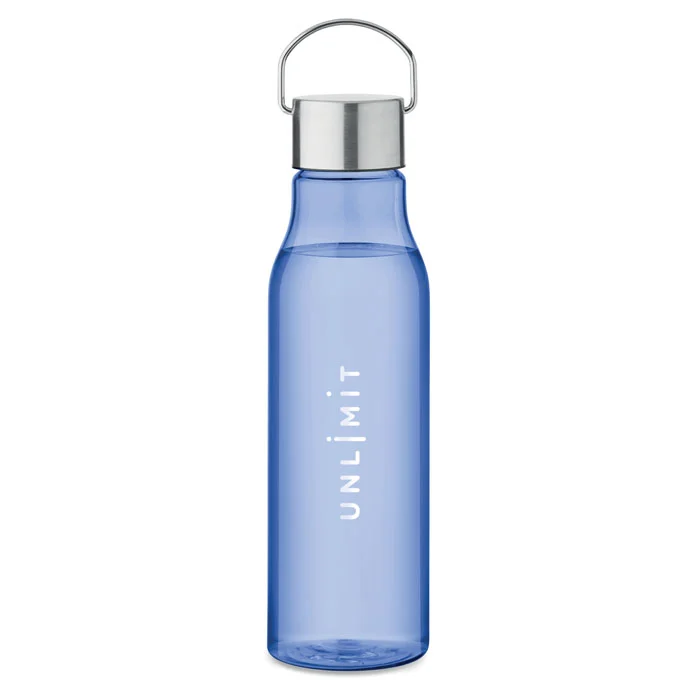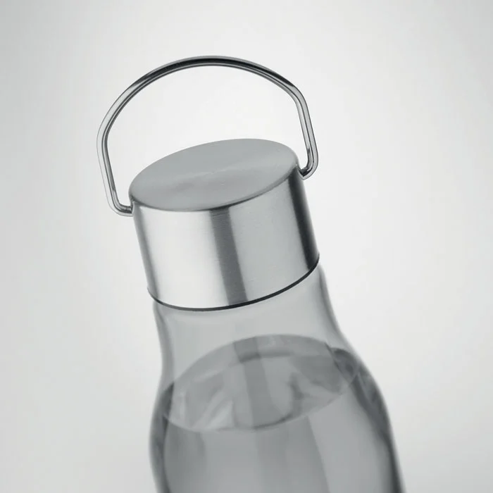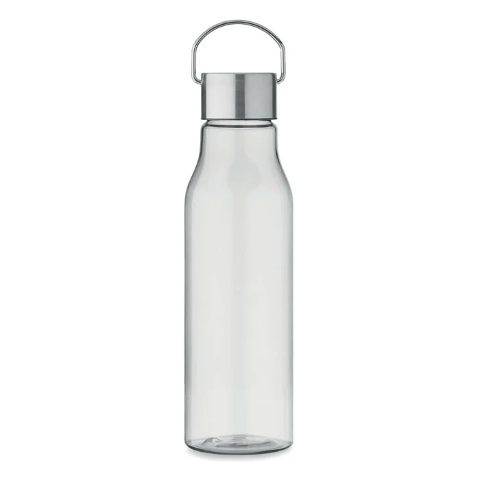 Bouteille en RPET sans BPA avec bouchon en acier inoxydable et poignée. Anti fuite. Capacité : 600 ml.