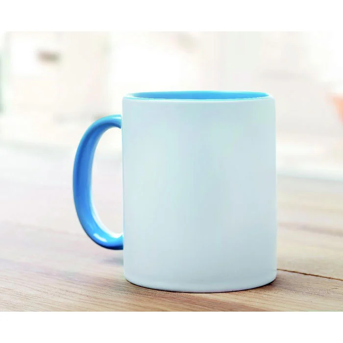 Mug en céramique de 300ml avec revêtement spécial pour sublimation. Intérieur et poignée colorés.