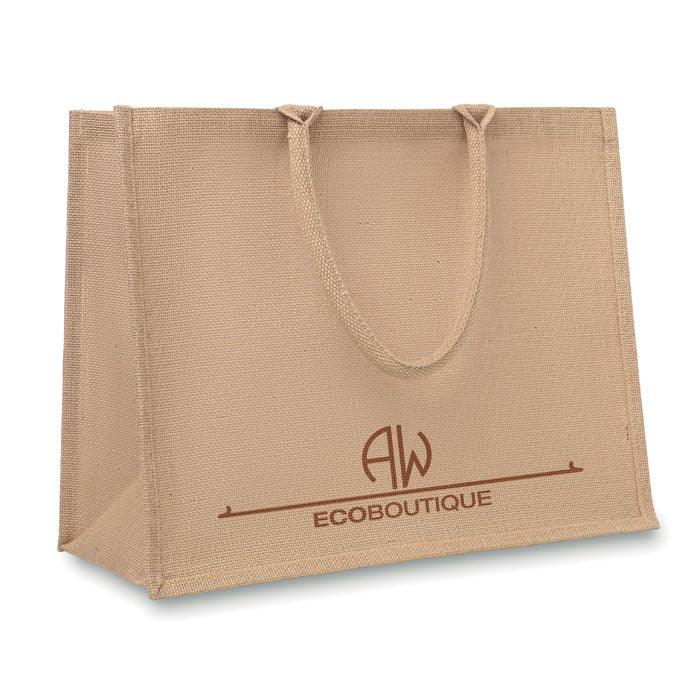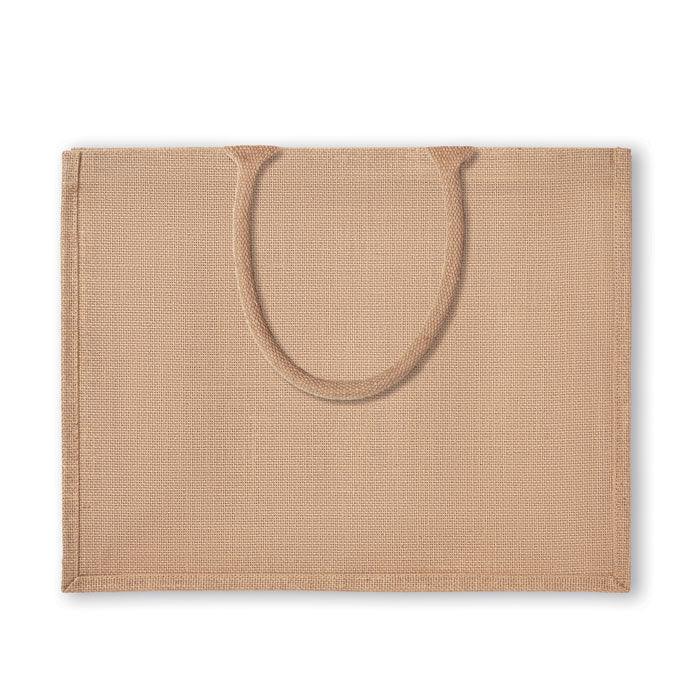 Sac shopping en jute laminé et anses en coton renforcé.