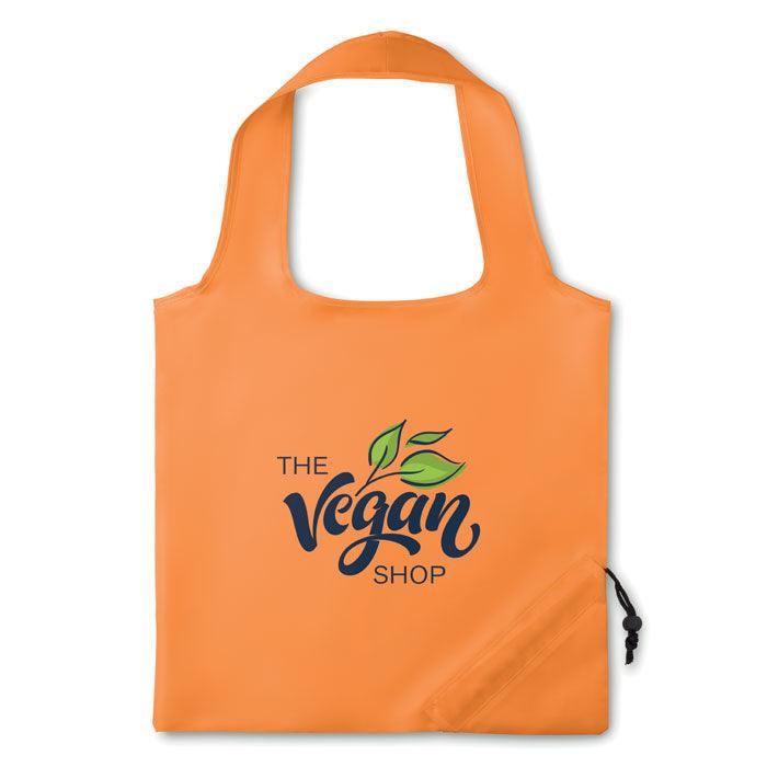 Sac shopping en polyester 210D pliable dans poche intégrée et refermable par un cordon.