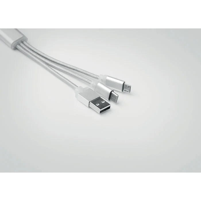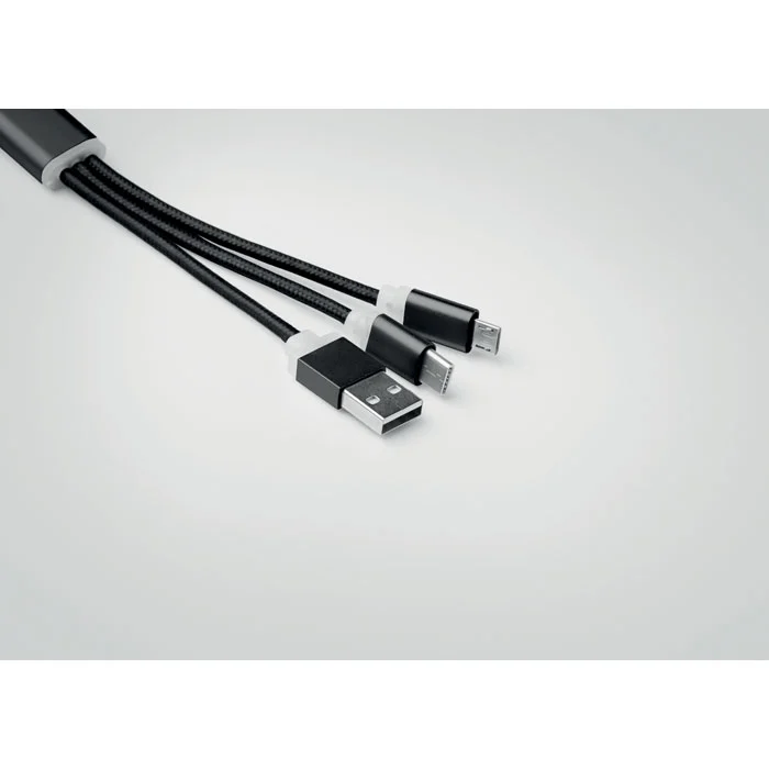 Porte-clés avec câble de chargement USB-A vers Micro-B (broche 2 en 1) et type C.
