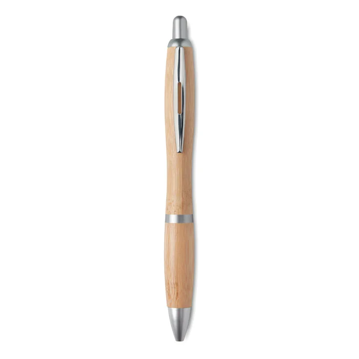 Stylo bille à bouton poussoir avec corps en bambou et attributs en ABS. Encre bleue. Le bambou est un produit naturel, et présente de légères variations de couleur, de décoration et de tailles. FSC®-certified | FSC 100%, N5.7, FSC-C213206