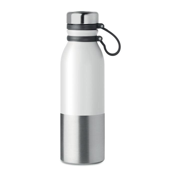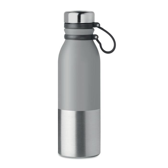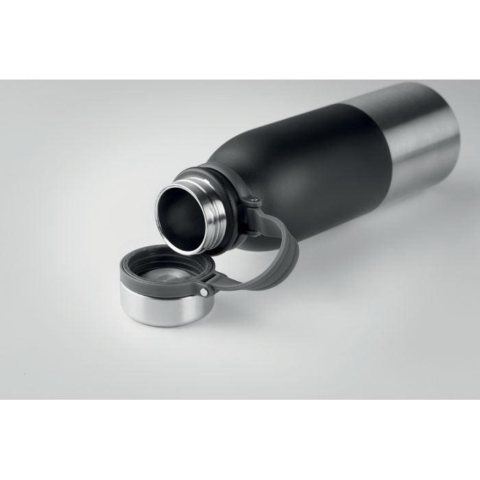 Bouteille à double paroi en acier inoxydable avec poignée en silicone pour un transport facile. Finition poudrée. Anti fuite. Contenance: 600 ml. Anti fuite.