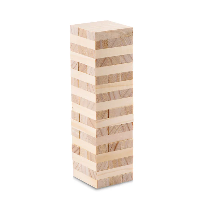 jeu de construction de tour en bois (54 blocs) dans une pochette en coton.