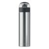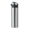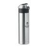 Gourde double paroi en acier inoxydable avec verrou de sécurité sur le couvercle et ouverture par pression. Poignée pliable sur le dessus pour faciliter le transport. Contenance 400 ml. Anti fuite.