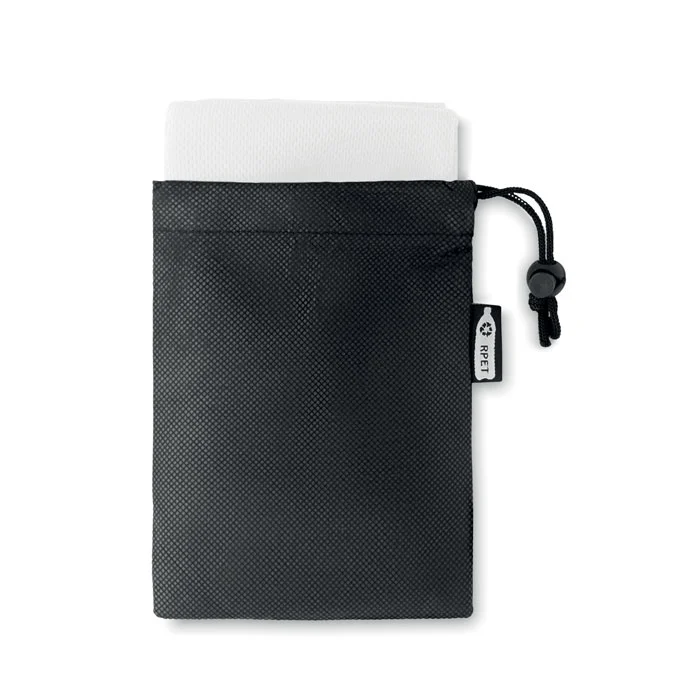 Serviette de sport en RPET, haute capacité d’absorption d’eau, comprend un sac en filet en RPET non tissé.