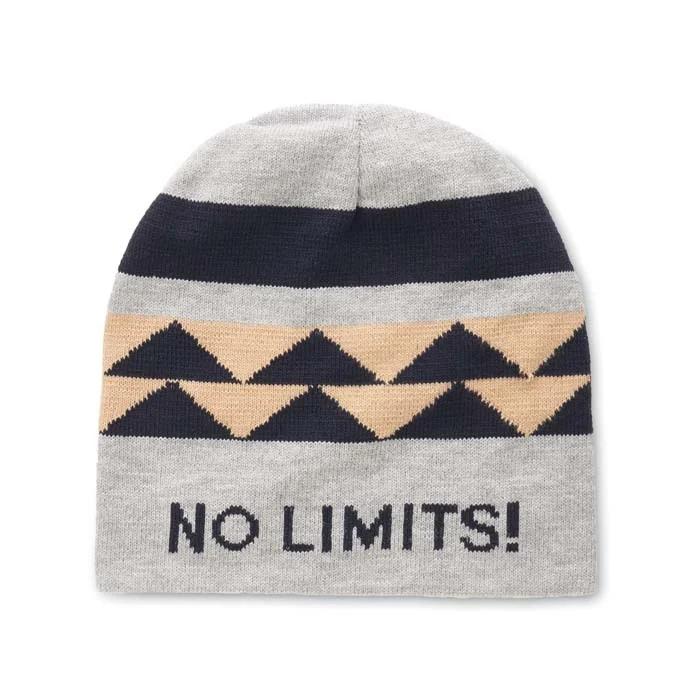 Bonnet jacquard en RPET double épaisseur avec votre motif jacquard personnalisé (jusqu’à 6 couleurs de votre choix incluses).