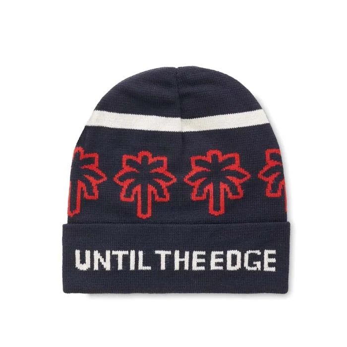 Bonnet à revers en jacquard RPET double couche avec votre motif jacquard personnalisé (jusqu’à 6 couleurs de votre choix incluses).