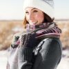 Echarpe jacquard double épaisseur dans votre design personnalisé et avec des franges colorées.