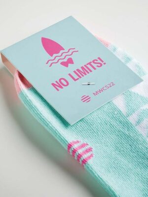 Chaussettes de cheville en jacquard avec le motif de votre choix et tissĂ©es avec les couleurs (jusqu’Ă 5) de votre choix. Vous pouvez Ă©galement ajouter une Ă©tiquette en papier en couleur avec votre motif personnalisĂ©.