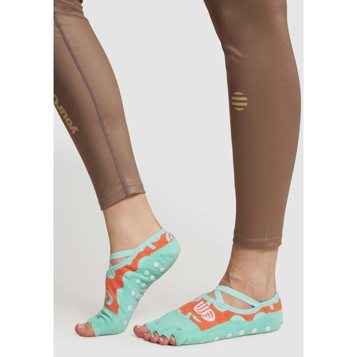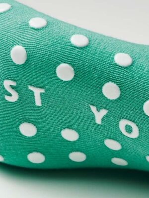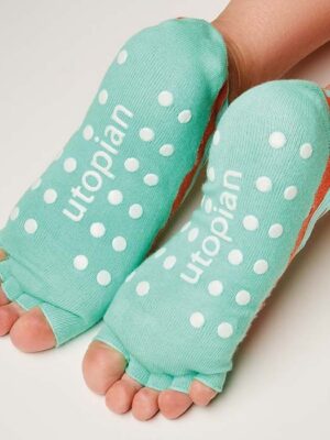 Chaussettes sans orteils en jacquard avec bandes antidérapantes en silicone dans la couleur (et le motif) de votre choix.