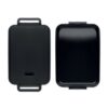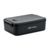 Grande boîte à lunch en PP avec couvercle hermétique, valve en silicone et fermeture par deux fermoirs latéraux. Capacité : 2200 ml.