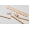 Tube en papier recyclé comprenant 2 crayons, 1 stylo à bille en carton, 1 taille-crayon en bois et 1 gomme.