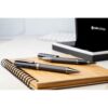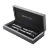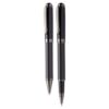 Set élégant comprenant un stylo à bille et un roller en métal avec corps motif carbone. Livré dans une boîte noire cadeau. Encre bleue. Produit André Philippe. Matieres : : Métal.
