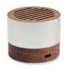 Enceinte sans fil 5.3 dans un boîtier en aluminium recyclé avec une base et une partie supérieure en noyer. 1 Batterie rechargeable Li-ION 300 mAh incluse. Données de sortie : 3W, 3 Ohm et 5V. Durée d’écoute d’environ 3 heures.