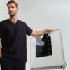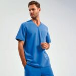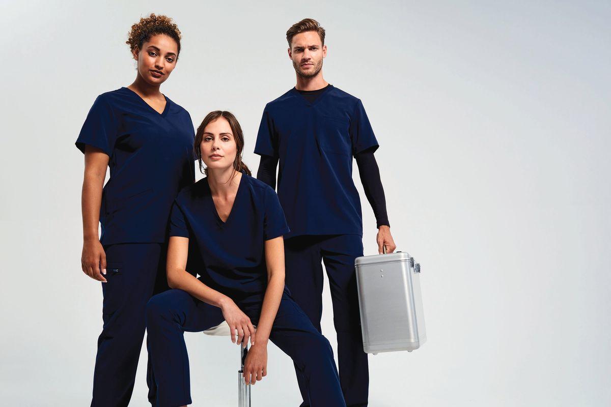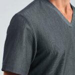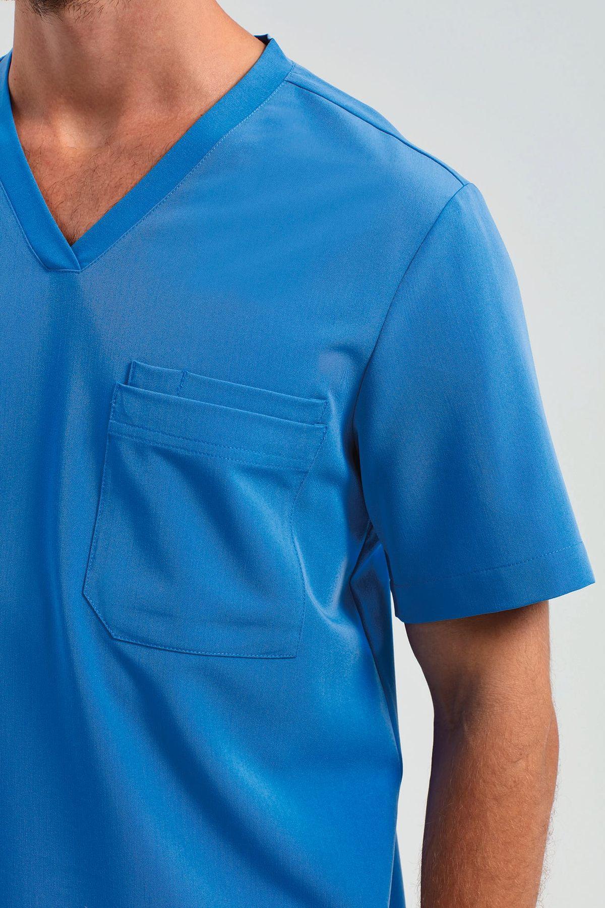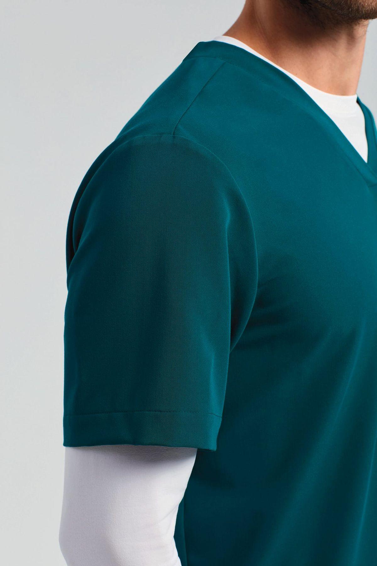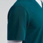 42% Polyester / 33% Polyester recyclé / 19% Viscose / 6% élasthanne. Encolure en V. Poche côte poitrine gauche. Fentes d’aisance latérales. Tissu respirant.