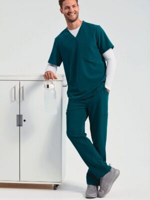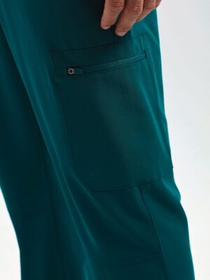 42% polyester / 33% polyester recyclé /19% viscose / 6% élasthanne. Poches avec fermetures zip. Taille partiellement élastiquée. Cordon de serrage. Fausse braguette. Fentes d’ourlets. Tissu respirant.