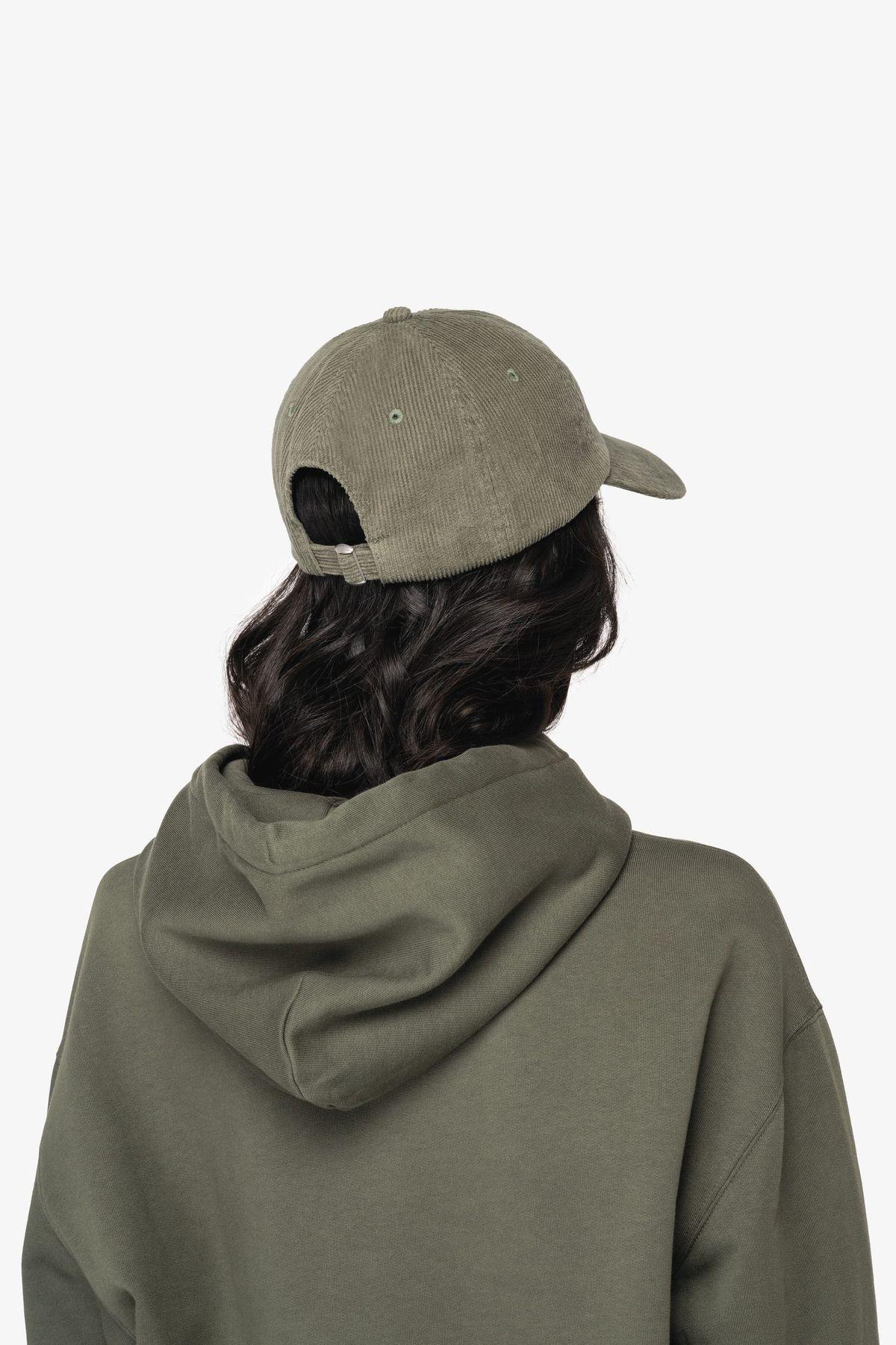 100% coton biologique. Tissu en velours côtelé. 6 panneaux. Patte ajustable en matière principale et boucle de serrage en métal recyclé. Visière avec surpiqûres. Biais finition intérieure. Panneau devant avec renfort