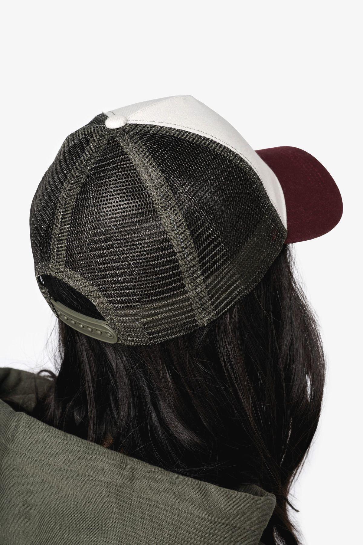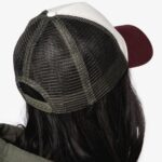 Visière et panneau avant en 100% coton biologique. Panneaux arrières en mesh 100% polyester recyclé post consumer. Tissus en twill et en mesh. Casquette 5 panneaux ajustable avec patte de serrage en plastique recyclé à l’arrière. Visière avec surpiqûres. Panneau avant avec renfort. Biais finition intérieure.