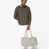 Extérieur : 85% coton biologique / 15% polyester recyclé post-consumer. Doublure : 75% coton recyclé pre-consumer / 22% polyester recyclé post-consumer/ 3% autres fibres. ONE SIZE (25 x 50 x 25cm). Capacité : 25L. Coton peigné. Molleton gratté 3 fils LSF (Low Shrinkage Fleece : molleton pré-rétréci). Lavé aux enzymes. Ouverture à double zip. Doublé avec poche intérieure zippée et zip pour la personnalisation en nylon recyclé. Zip d’ouverture en métal recyclé. Anses renforcées.