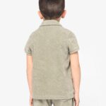 80% coton biologique / 20% polyester recyclé post-consumer. Fabriqué au Portugal. Coton peigné. Matière éponge. Coupe ajustée. Coutures latérales. Lavé aux enzymes. Poche plaquée poitrine. Demi-lune au dos. Col en matière principale. Manches courtes avec finition bas de manches en bord côte 1 x 1 et surpiqûre aux emmanchures. Patte de boutonnage avec 2 boutons en plastique blanc effet nacré. Renfort épaule en matière principale. Ourlet double surpiqûre bas de vêtement. Fentes latérales et encolure avec bande de propreté intérieure en chevrons ton sur ton.