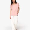 100% coton biologique. Coton peigné. Maille jersey. Lavé aux enzymes. Coupe loose avec épaules tombantes. Bas de manches à revers avec point d’arrêt pour maintenir l’effet roulotté. Renfort épaule. Encolure en bord côte 1 x 1. Finition bande de propreté intérieure en jersey ton sur ton. Finition simple surpiqûre bas de vêtement.