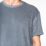 80% coton biologique / 20% polyester recyclé post-consumer. Fabriqué au Portugal. Coton peigné. Tissu éponge. Produit lavé aux enzymes. Coupe ajustée. Finition encolure bande de propreté en chevrons ton sur ton. Col en bord côte 1×1. Renfort épaules. Finition bas de manches et de vêtement double surpiqûre. Demi-lune au dos.