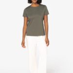 100% coton biologique. Coton peigné ringspun. Coupe ajustée. Coutures latérales. Lavé aux enzymes. Bord côte col 1 x 1. Bande de propreté intérieure col en matière principale. Ourlet double surpiqûre bas de manches et bas de vêtement. La couleur Raw Natural se distingue par son aspect brut visuellement texturé, parsemée de fines particules visibles à l’œil nu.