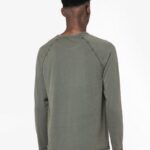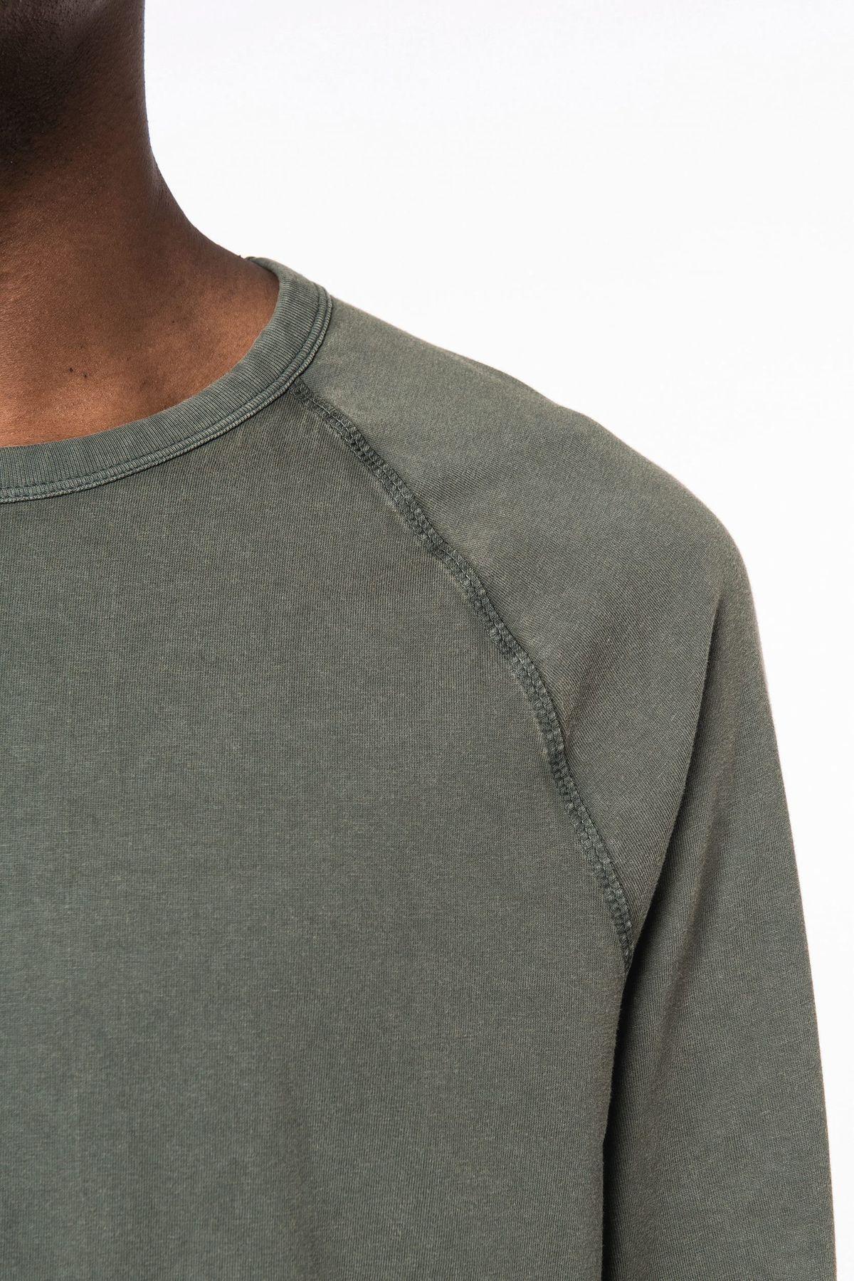 100% coton biologique. Coton peigné. Coupe ajustée. Coutures latérales. Aspect délavé. Manches raglan. Encolure ronde avec colletage en bord côte 1 x 1. Finition en points de recouvrement manches raglan, bas de manches et de vêtement. Bande de propreté intérieure col en chevrons. Vêtement teint après montage : les couleurs peuvent légèrement varier d’une pièce à l’autre. Ce produit est susceptible de déteindre au contact avec des surfaces ou vêtements clairs.