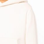 85% coton biologique / 15% polyester recyclé post-consumer. Coton peigné ringspun. Coupe ajustée. Molleton gratté 3 fils LSF (Low Shrinkage Fleece : molleton pré-rétréci). Lavé aux enzymes. 1/2 lune au dos. Bord cote 1 x 1 bas de vêtement et bas de manches. Double surpiqûre sur bas de manches, emmanchures et bas de vêtement. Simple surpiqûre à l’encolure. Encolure avec bande de propreté intérieure en chevrons. Capuche doublée en matière principale très épurée sans surpiqûre à l’ouverture.