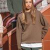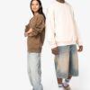 85% coton biologique / 15% polyester recyclé post-consumer. Coton peigné ringspun. Lavé aux enzymes. Coupe oversize à épaules tombantes. Molleton gratté 3 fils LSF (Low Shrinkage Fleece : molleton pré-rétréci). 1/2 lune au dos. Bord côte 2 x 1 au col, bas de vêtement et bas de manches. Double surpiqûre à cheval sur le col, les bas de manches et le bas de vêtement. Bande de propreté intérieure en chevrons ton sur ton à l’encolure. La couleur Raw Natural se distingue par son aspect brut visuellement texturé, parsemée de fines particules visibles à l’œil nu.