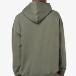 85% coton biologique / 15% polyester recyclé post consumer. Coton peigné ringspun. Coupe oversize à épaules tombantes. Lavé aux enzymes. Molleton gratté 3 fils LSF (Low Shrinkage Fleece : molleton pré-rétréci). 1/2 lune au dos. Capuche doublée en matière principale. Poches côtés minimalistes. Bord côte 2 x 1 bas de vêtement et bas de manches. Double surpiqûre à cheval sur le bas de vêtement et le bas de manches. Encolure avec bande de propreté intérieure en chevrons. La couleur Raw Natural se distingue par son aspect brut visuellement texturé, parsemée de fines particules visibles à l’œil nu.