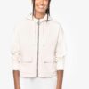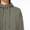 85% coton biologique / 15% polyester recyclé post-consumer. Coton peigné. Coupe confort avec épaules tombantes. Molleton non gratté (French Terry). 3 fils LST (Low Shrinkage Terry : pré-rétréci). 1/2 lune dans le dos. Lavé aux enzymes. Zip en métal recyclé avec tirette en forme arrondie. Deux poches plaquées devant avec rabat. Capuche à pince doublée en matière principale. Cordon de serrage plat en coton biologique. Bande de propreté intérieure encolure en chevrons. Finition bas de manches en bord côte 1 x 1. Finition bas de vêtement en simple surpiqûre. Finition intérieure du zip avec biais de propreté en jersey.