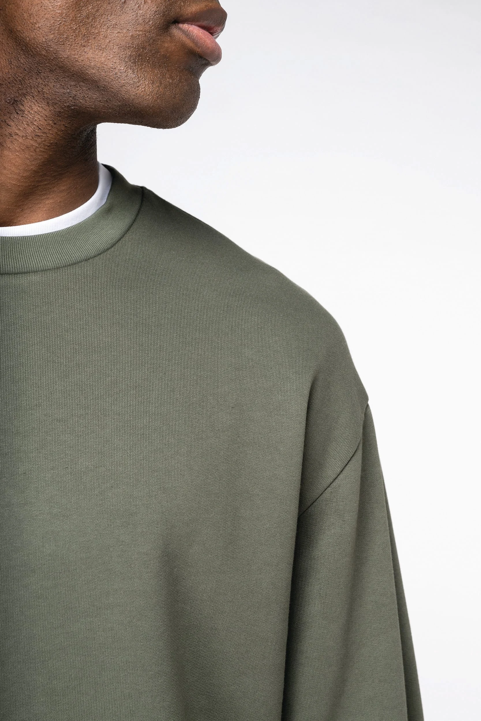 100% coton biologique. Coton peigné. Coupe standard à épaules tombantes. Molleton 3 fils gratté. 1/2 lune au dos. Lavé aux enzymes. Bord côte 1 x 1 encolure, bas de manches et bas de vêtement, montage tubulaire pour une meilleure finition.