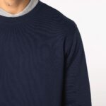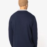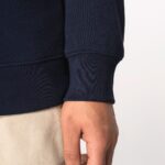 85% coton biologique, 15% polyester recyclé post-consumer. Coton peigné. Coupe ajustée. Molleton gratté 3 fils LSF (Low Shrinkage Fleece : molleton pré-rétréci). Lavé aux enzymes. Bord côte 1 x 1 au col, bas de manches et bas de vêtement. Finition intérieur col avec bande de propreté en jersey ton sur ton. Double surpiqûre à cheval sur emmanchures, bas de manches et bas de vêtement. Demi-lune au dos.