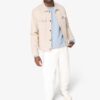 90% coton biologique / 10% chanvre. Coton twill. Coupe droite. Boutons en métal recyclés. Tissu naturel (non teint). Lavé aux enzymes. Deux poches poitrine boutonnées avec rabat. Patte de resserrage avec boutons sur bas de vêtement au dos. Deux poches avant passepoilées . Empiècements sur le devant et au dos. Manches avec fentes et poignets boutonnés. La couleur Raw Natural se distingue par son aspect brut visuellement texturé, parsemée de fines particules visibles à l’œil nu.