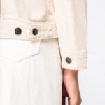 90% coton biologique / 10% chanvre. Coton twill. Coupe droite. Boutons en métal recyclés. Tissu naturel (non teint). Lavé aux enzymes. Deux poches poitrine boutonnées avec rabat. Patte de resserrage avec boutons sur bas de vêtement au dos. Deux poches avant passepoilées . Empiècements sur le devant et au dos. Manches avec fentes et poignets boutonnés. La couleur Raw Natural se distingue par son aspect brut visuellement texturé, parsemée de fines particules visibles à l’œil nu.