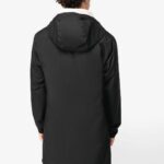 100% polyester recyclé post-consumer. Coupe droite. Imperméable 4000mm. Respirant 3000 g/m2/24h. Zip imperméable recyclé avec tire-zip en métal recyclé. Tissu avec membrane intérieure et coutures thermo soudées permettant au produit d’être imperméable. Deux poches passepoilées avec zip inversé. Capuche avec cordon de serrage. Bas de manches élastiqués.