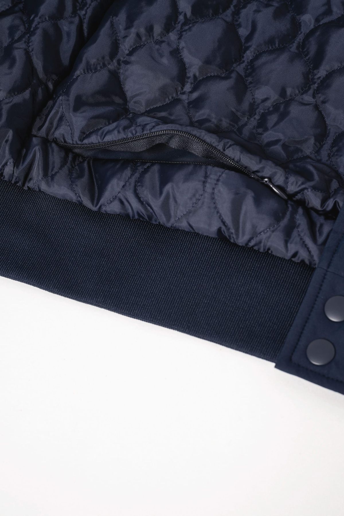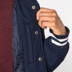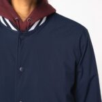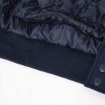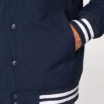100% polyester recyclé post-consumer. Polyester pongé. Coupe droite. Tissu déperlant niveau 4 avec enduction. Veste rembourrée en polyester recyclé post-consumer. Col teddy. Fermeture avant par boutons-pression recyclés ton sur ton. Bord côte 1 x 1 avec bandes contrastées au col, bas de manches et bas de vêtement. Poches avant passepoilées fermées par bouton-pression invisible. Poche intérieure zippée côté cœur au porté. Doublure matelassée ton sur ton. Patch de personnalisation en matière principale avec bride de suspension à l’intérieur du vêtement. Zip de personnalisation poitrine et bas de vêtement.