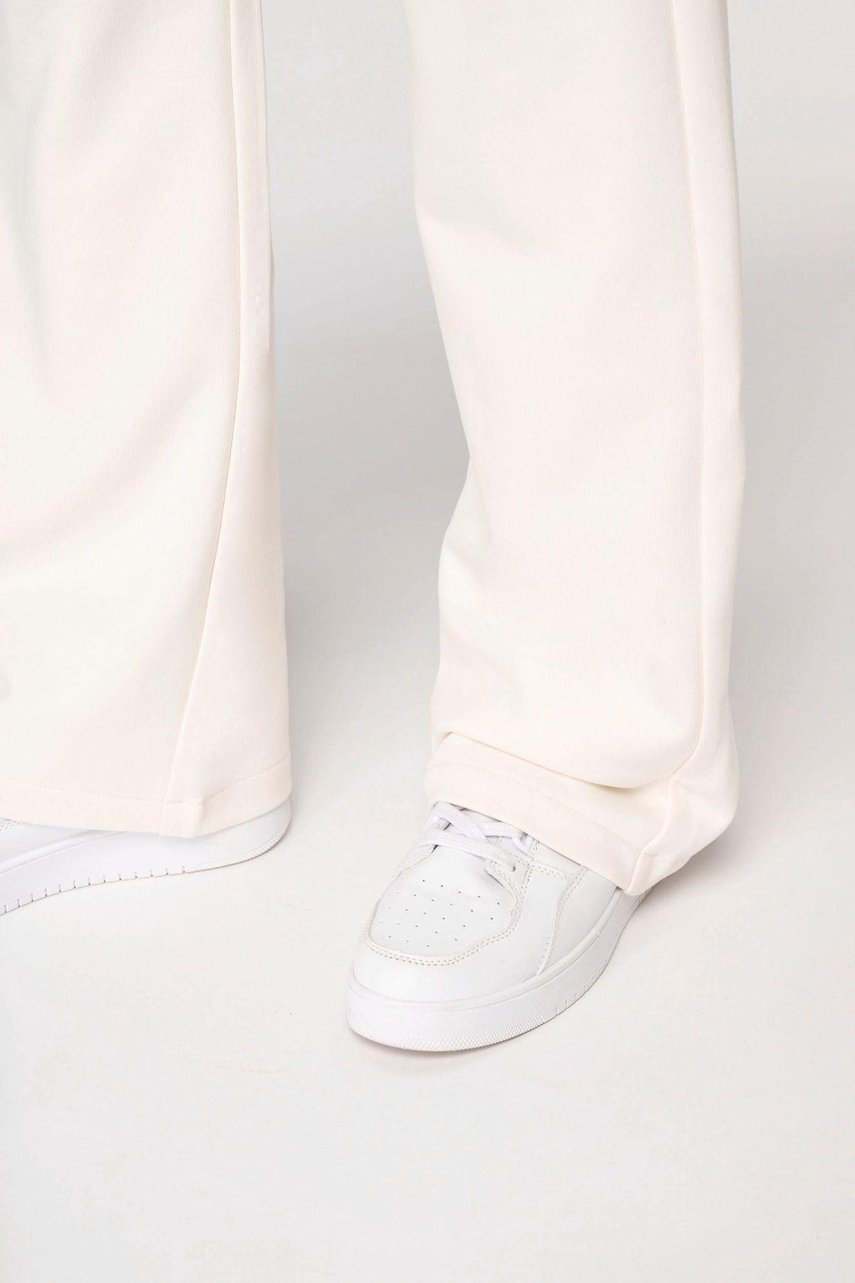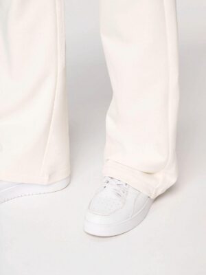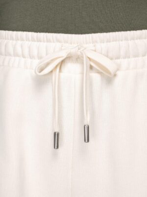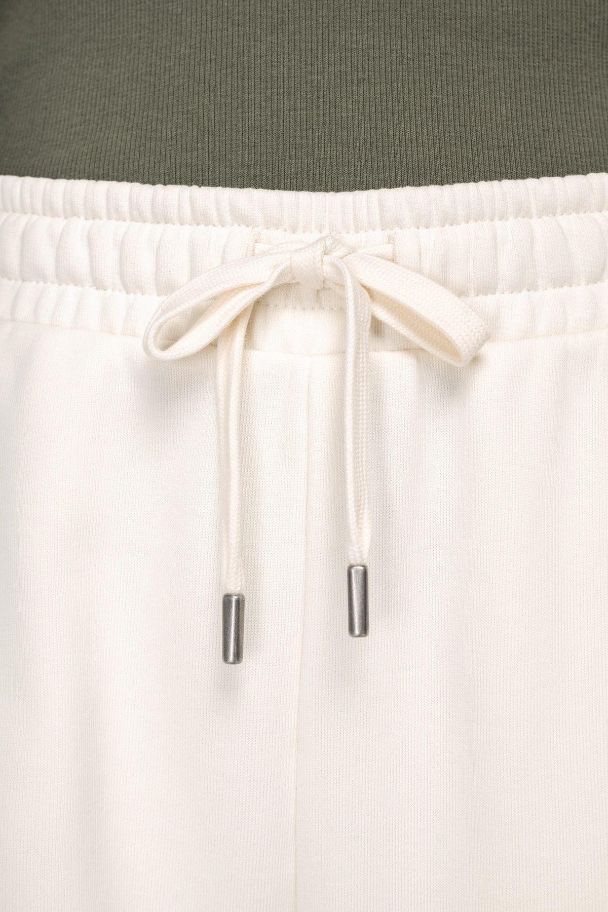 85% coton biologique / 15% polyester recyclé. Coton peigné. Coupe large. Intérieur molleton non gratté (French Terry). 3 fils LST (Low Shrinkage Terry : pré-rétréci). Lavé aux enzymes. Œillets brodés. Poches côtés minimalistes. Ourlet simple surpiqûre bas de vêtement. Ceinture élastiquée avec surpiqûres, cordon de serrage plat en coton biologique et embout en métal recyclé.