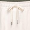 85% coton biologique / 15% polyester recyclé. Coton peigné. Coupe large. Intérieur molleton non gratté (French Terry). 3 fils LST (Low Shrinkage Terry : pré-rétréci). Lavé aux enzymes. Œillets brodés. Poches côtés minimalistes. Ourlet simple surpiqûre bas de vêtement. Ceinture élastiquée avec surpiqûres, cordon de serrage plat en coton biologique et embout en métal recyclé.